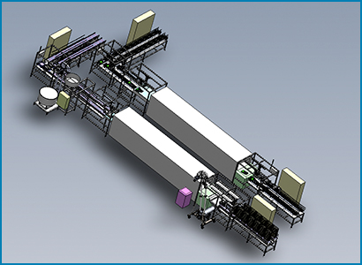 流体プロセスとFAとを融合し、各種液処理~充填~梱包までを一貫した自動システムとし、ターンキーシステムを実現する。